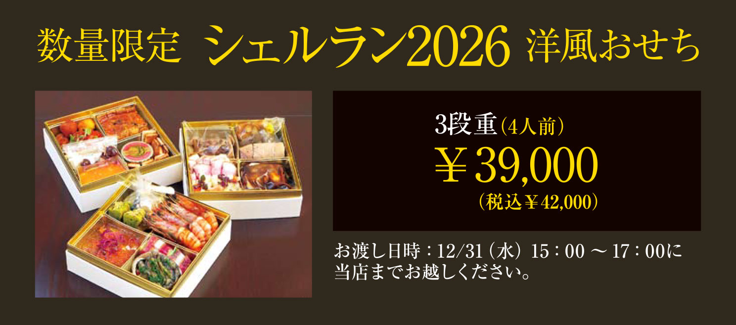 ¥39,000(税込)お渡し日時:12/31(金)15:00~17:00に当店までお越しください。